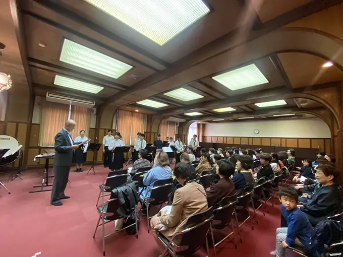 49名の会員が集まり、懐かしい校舎の中や資料館を見学し、大会議室で松村校長先生からご挨拶を頂きました。ブラスバンド部の皆様から校歌や心わくわくする演奏していただき、最後に天八魂で会場が一つになりました。懇親会では懐かしい高校時代の思い出で話しをしているうちに、乙女の笑顔の花盛りになっていました。